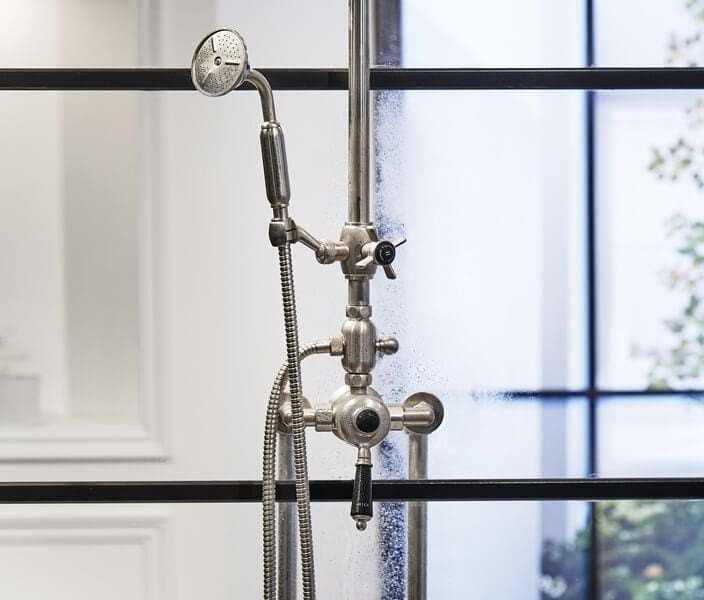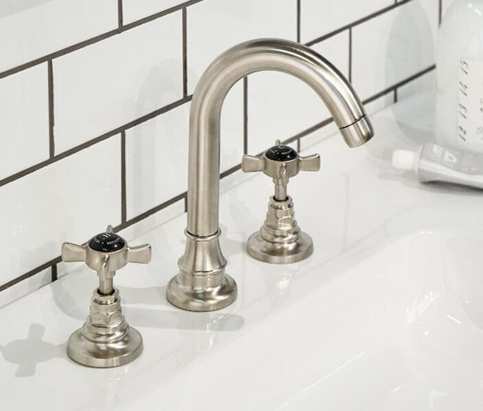While honouring the industrial-chic trend, this range of taps and mixers, finished in warm brushed nickel and partnered with black levers and indices are romantic, soft and inviting. With a selection of finishes to choose from, the affordable Britannia Collection of tapware offers a high-end look at a perfect price-point.