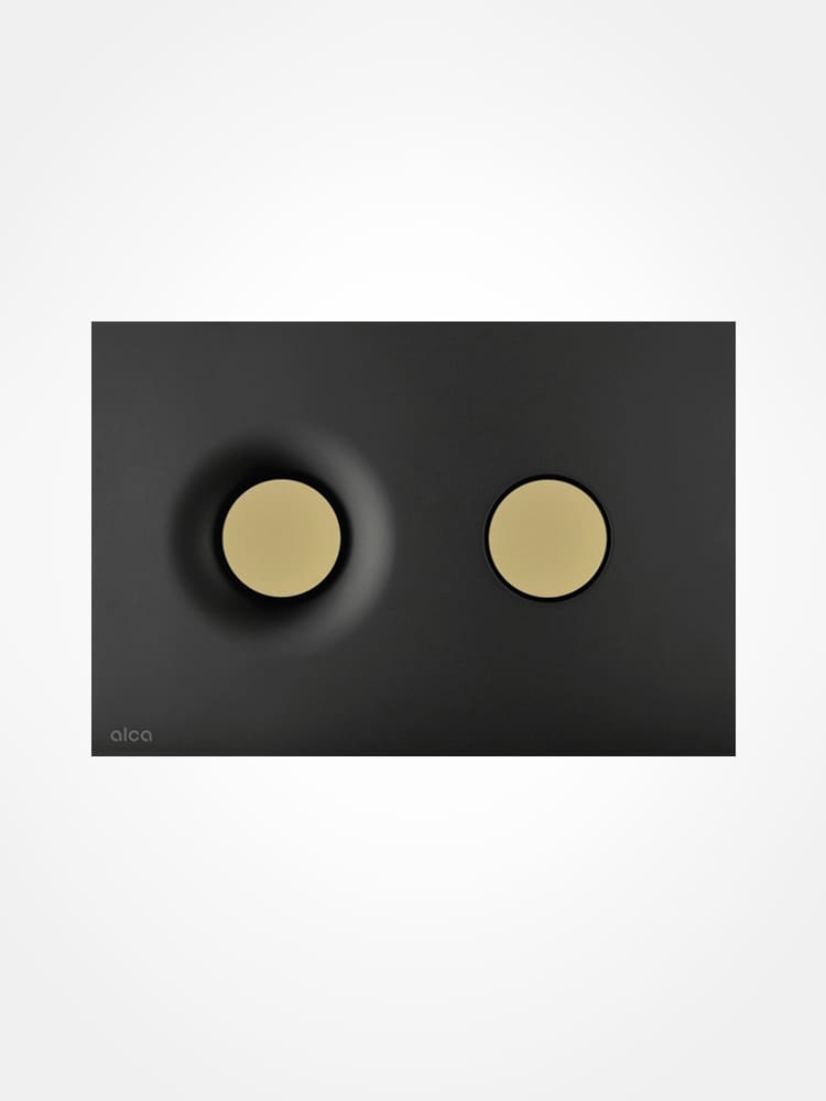 Circle Indent Matt Black with Gold Actuator Plate only – cistern purchased separately.