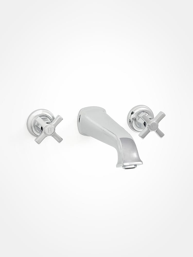 Arte three hole bath-basin mixer with quarter turn Arte tap heads.