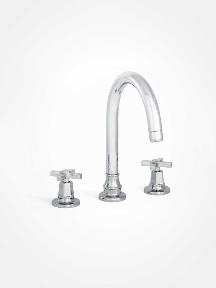 Arte three hole large swivel spout with quarter turn tap heads.