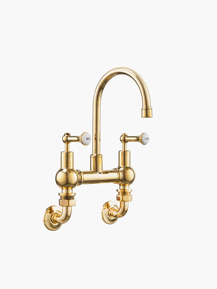 The Heritage Bridge Mixer is available as a basin and a sink mixer, with the sink mixer option having a larger spout. It can be deck mounted or supplied with wall unions to give it a wall mounted installation.