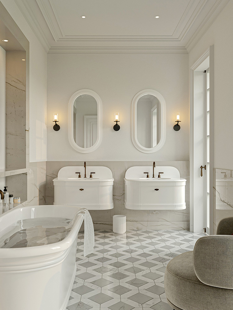 The Belle Mirror, a statement piece in its own right, complements the Belle Basin & Vanity with its design harmonising seamlessly with the rest of the ensemble.