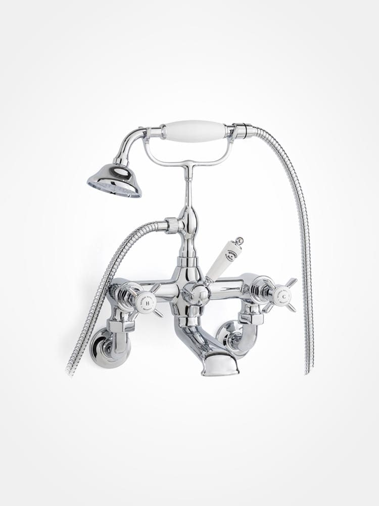 Britannia Deluxe bath mixer with handshower, cradle, diverter & quarter turn traditional tap heads.