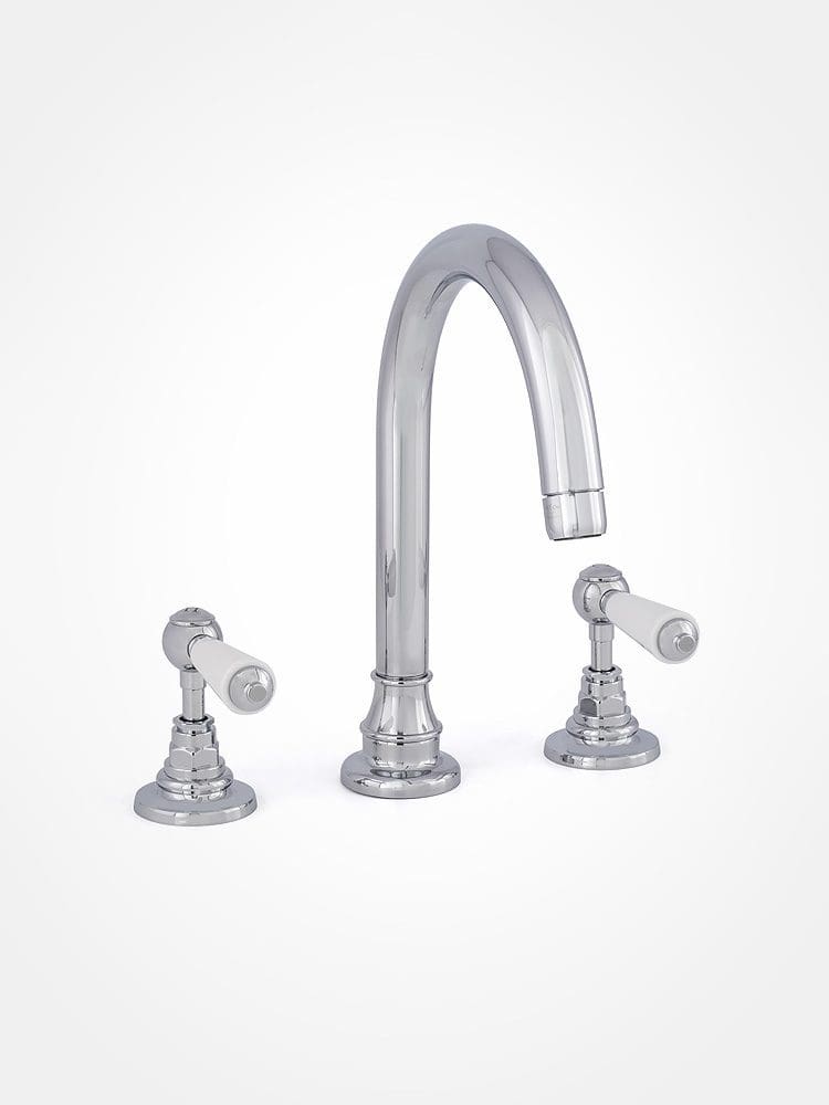 Includes the Britannia large high rise swivel spout and a pair of Britannia side valves with levers.
