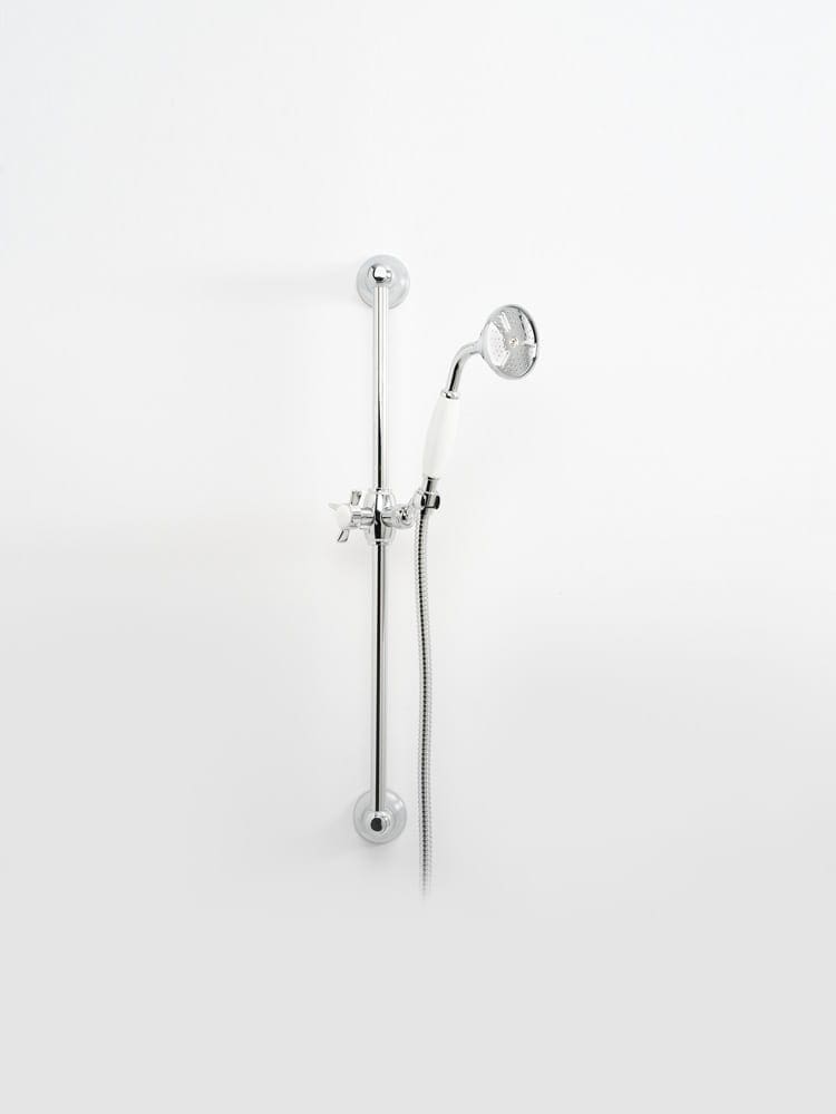The Britannia sliding rail kit includes the Britannia handshower, a solid brass chrome plated sliding rail, slider, and 1500mm flexible hose.