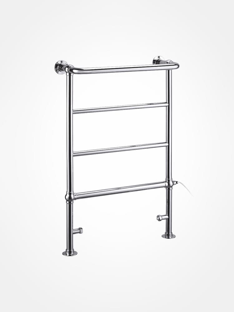 The Burlington Berkeley heated towel rail is made from 32mm chrome plated tubular brass. Clean with warm water, a mild detergent and dry with a soft cloth. Avoid cleaners containing abrasive materials. When situated close to the sea, ensure that the metal is cleaned regularly to remove salt residue.