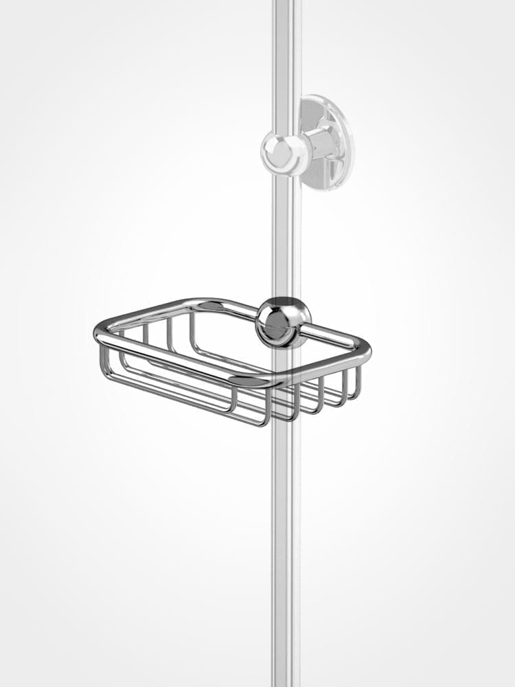 The Burlington soap basket is designed to fit onto an exposed riser pipe.