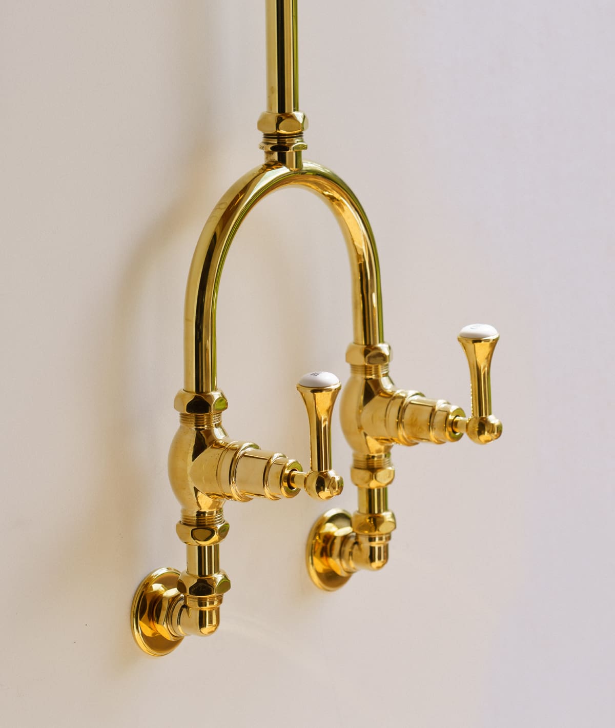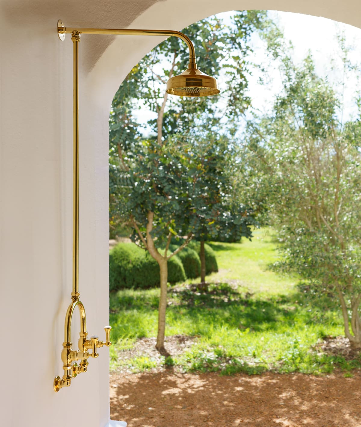 The Heritage Farmhouse shower system is supplied with an arched bridge mixer with levers, riser pipe and shower arm – not including rose. Available with a selection of separately priced shower roses – 6”, 8” or 12” shower roses.