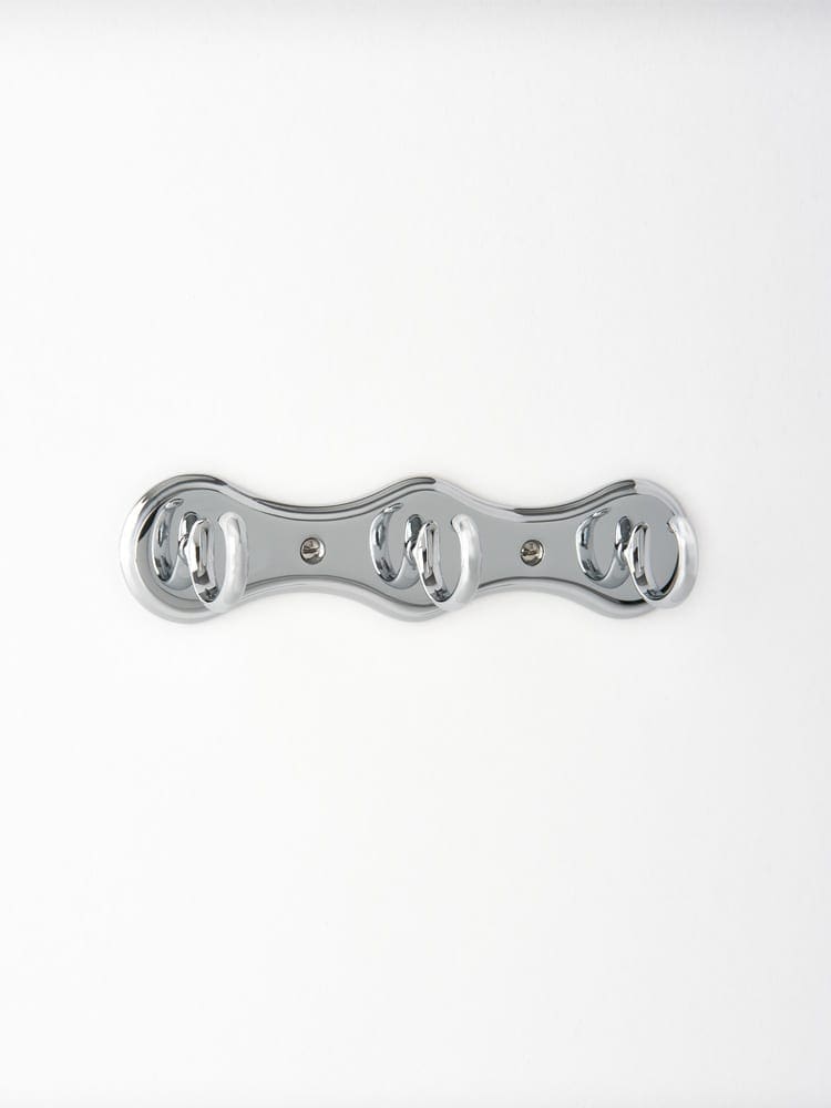 A collective hook with three small hooks on one solid backplate.