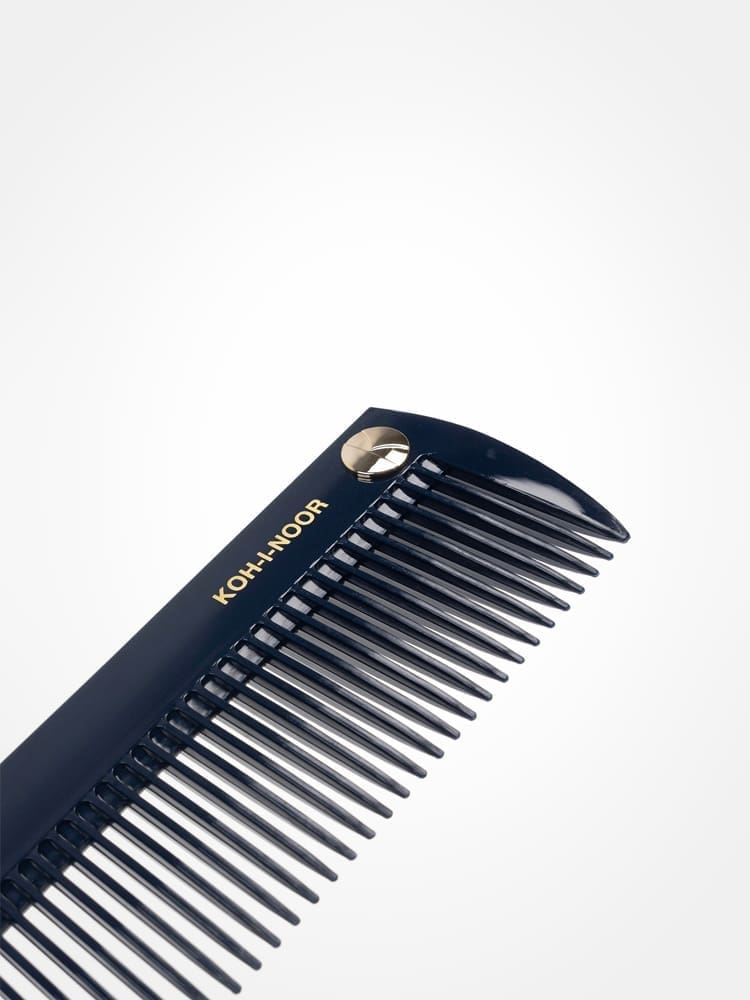 The wide tooth comb embodies elegance and function, crafted from premium cellulose acetate and hand-finished for gentle detangling and styling on all hair types – an essential for any grooming collection.