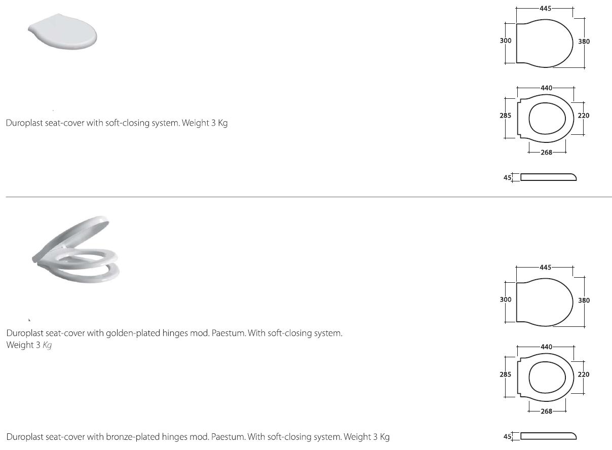 The Paestum thermo plastic toilet seat is designed to fit the Paestum back to wall pan and the Paestum wall hung pan.