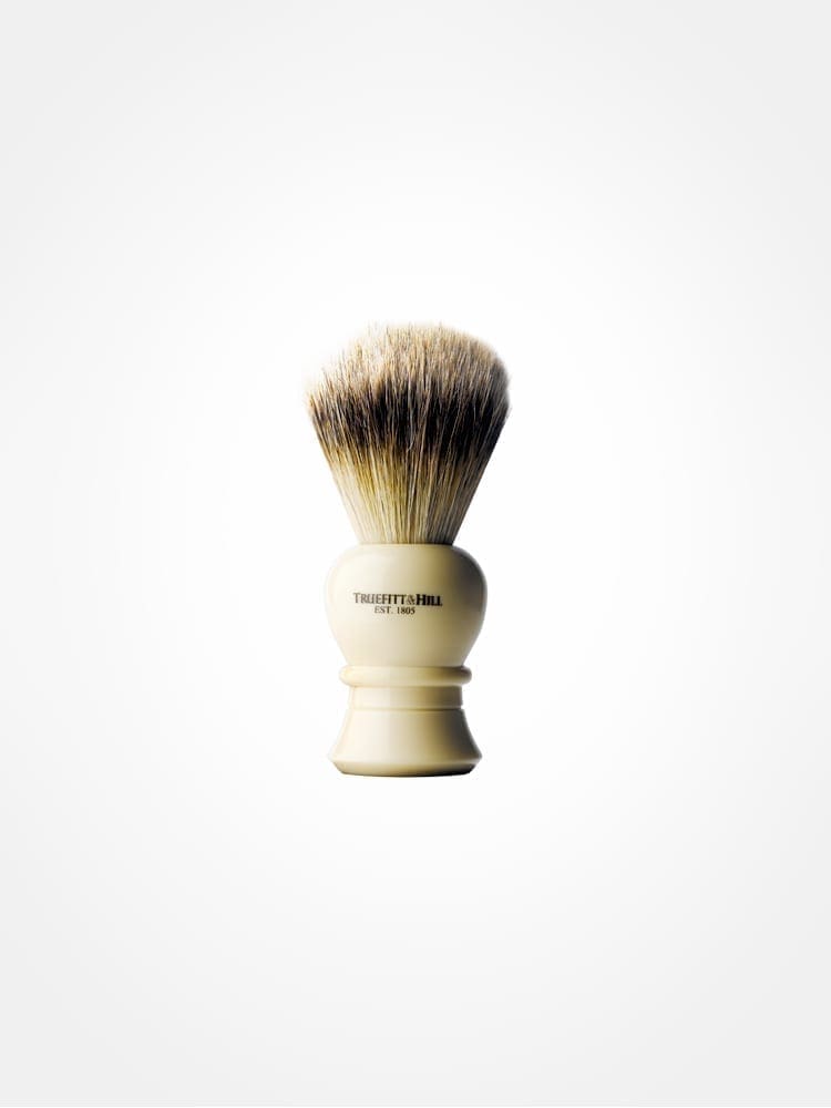 Truefitt & Hill’s shaving brushes, hand made in the UK with the finest quality super badger hair, are renowned for its water absorbing qualities. The fibrous natural bristles of the badger haired brush hold significantly more water than their synthetic equivalent, making badger haired brushes the best accompaniment to your shaving ritual. The additional benefits of using a brush are numerous – it will gently exfoliate the skin while lifting the bristles of the beard and coating each individual whisker with shaving cream ensuring the most comfortable shave possible.