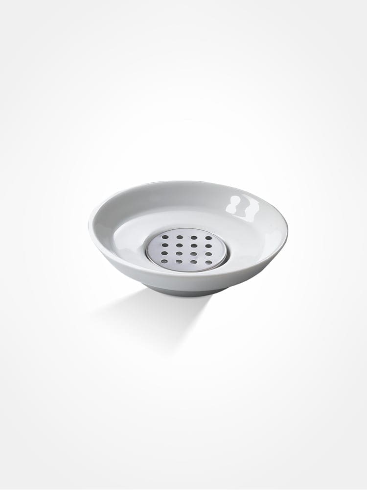 Porcelain soap dish with stainless steel insert
