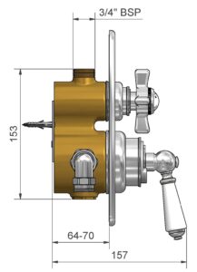 This mixer is designed for a concealed installation with a concealed depth of 64–70mm.