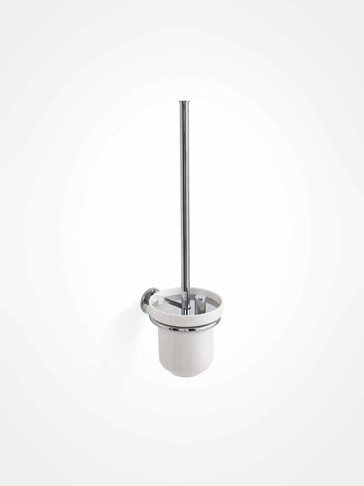 Includes a toilet brush, ceramic bowl, sliding lid and ring holder for wall mounting.