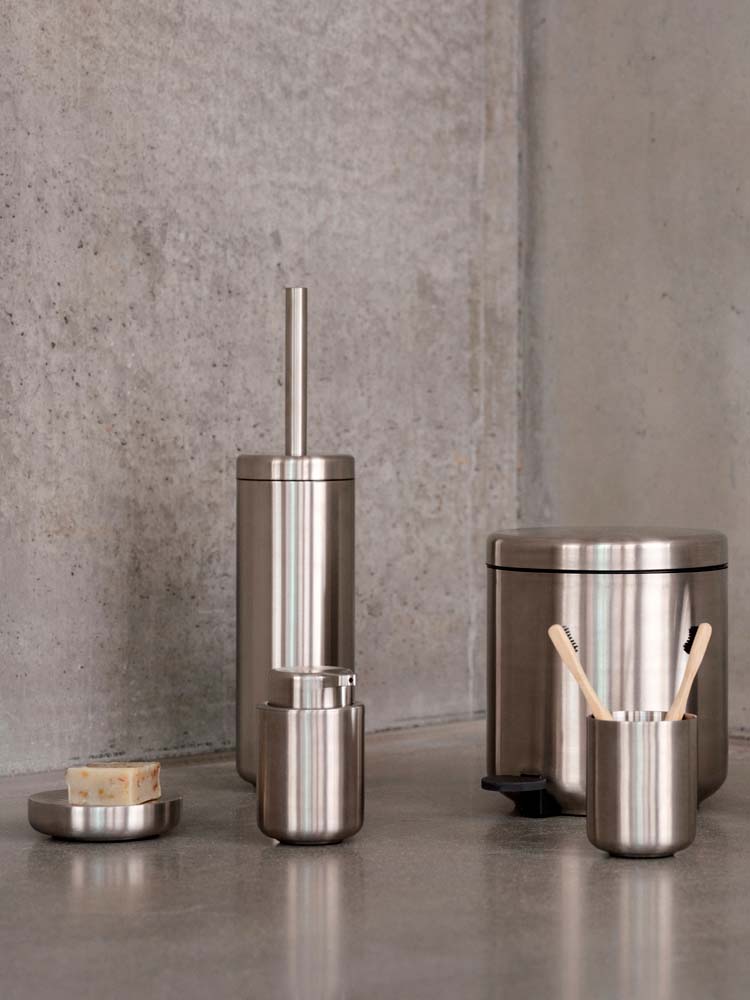 This freestanding toilet brush is made from steel in a matte finish featuring sleek lines and a contemporary edge.