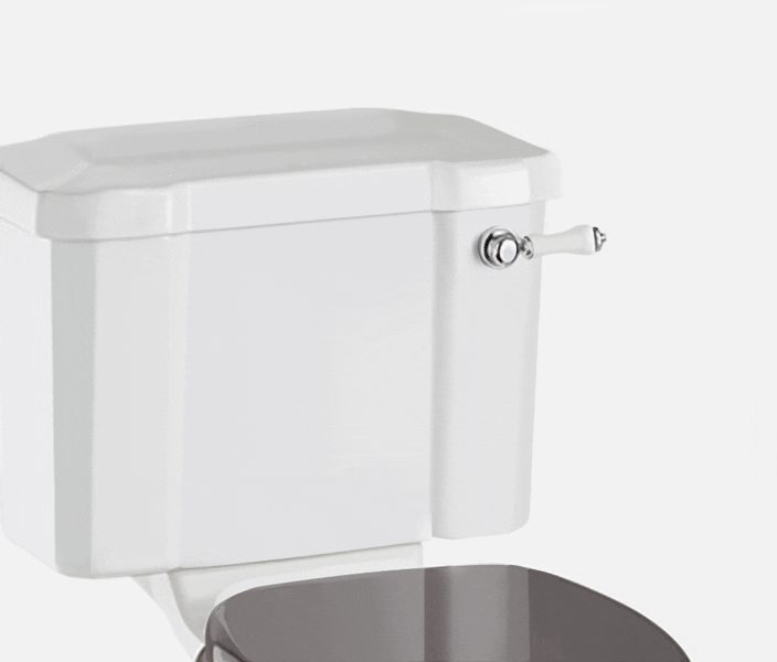 Burlington close couple toilets are also available with dual flush mechanisms – for a full 6 litre flush gently push the cistern lever downwards or for a reduced 3 litre flush simply tip the lever upwards.
